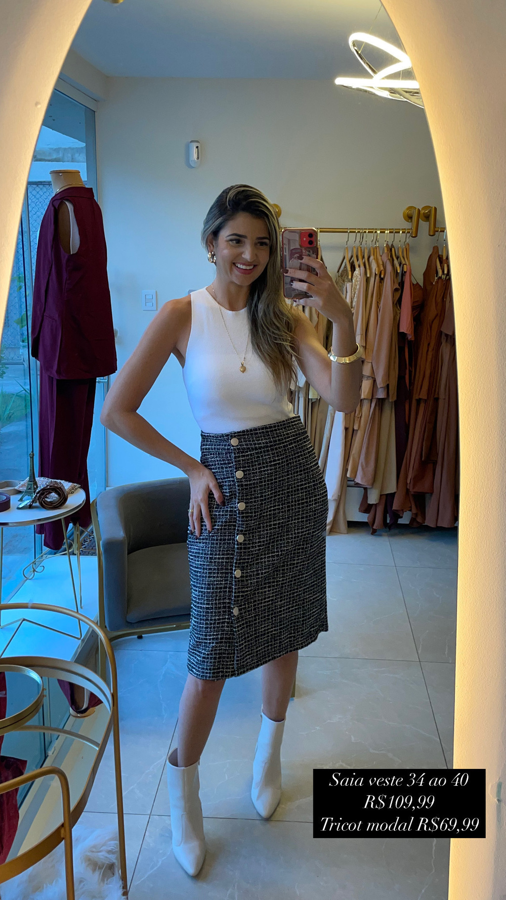 Saia Tweed Midi: Elegância e Modernidade para Seu Guarda-Roupa!